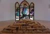 plexiglass, spray paint, cellophane, foil, parchment, gel filters. 8' x 8'